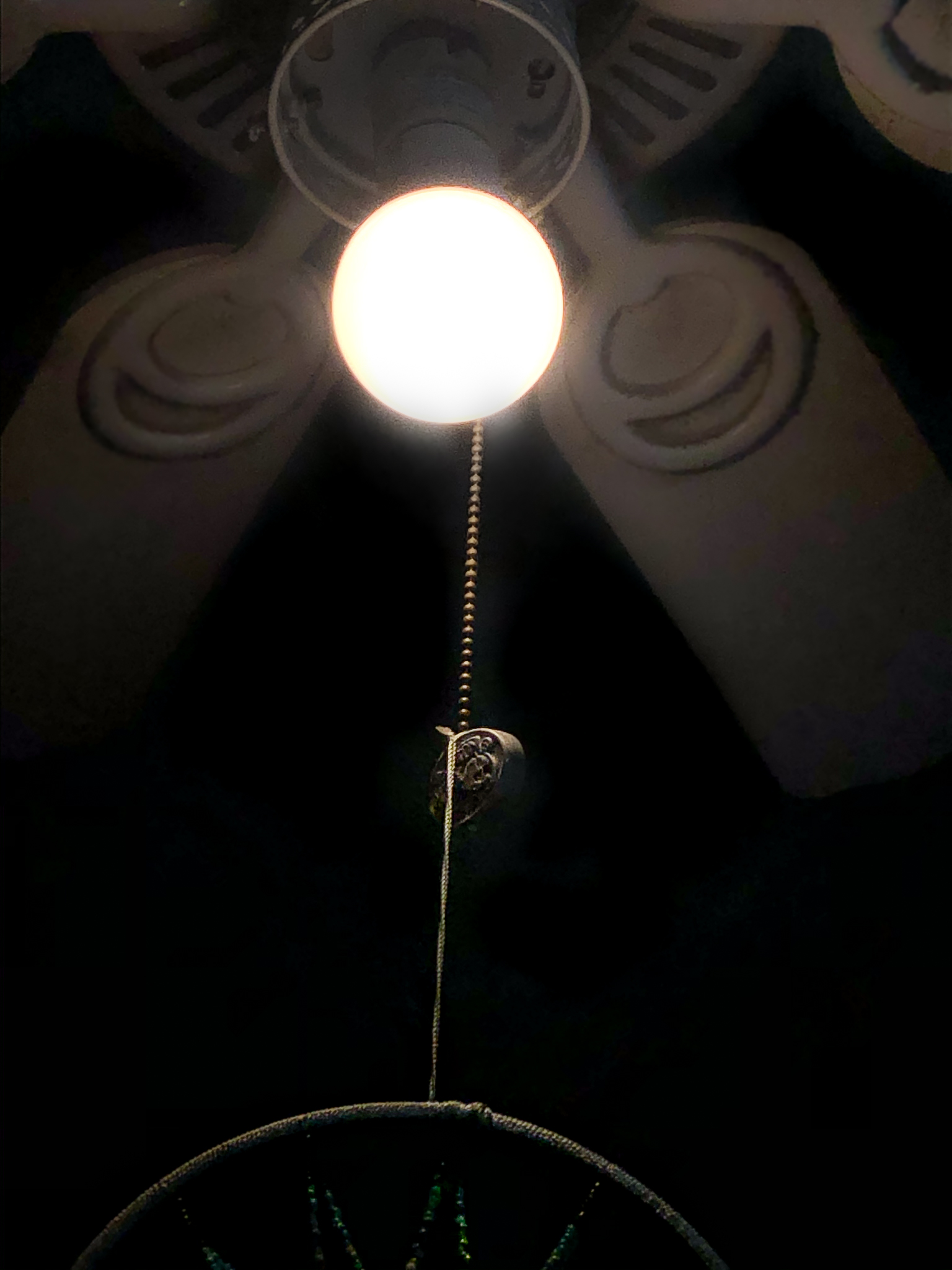 Interesting…you used actual lights as your subject. If you cropped the image with the ceiling fan to about halfway down into the light bulb we would really notice the way the light catches the edge of the chain and dreamcatcher. That would be stunning! Keep at it!